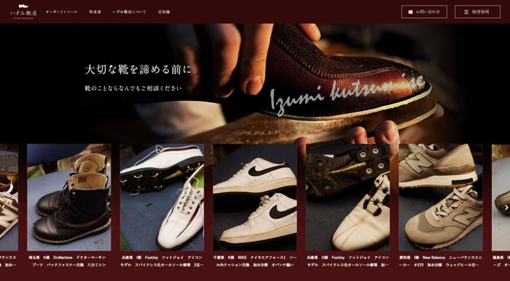 義理の父が営んでいた靴の修理店を継ぐべく独学で靴の修理技術を学んだ「いずみ靴店」の店主・虫明隆二さん。以来17年、靴底縫い用のマッケーミシン機など設備の充実と技術を磨いてきた彼の元には、WEBサイトを通じて、スニーカーから革靴まで 全国から修理の依頼が殺到しているという。実際、店舗のWEBサイトの修理事例の数を見れば、およそ一人で手がけているとは思えないほどの過去サンプルが詳細に例示されているので、ぜひ見ていただきたい。それでいて料金体系も明解で、リーズナブルだ。