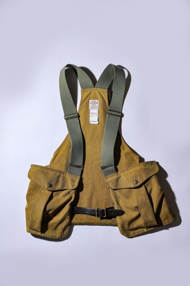 「ハンティングの際に着るオーバーベストとしてリリースされている定番モデル。フロントに2つポケットが付き、背面にゲームポケットと呼ばれる獲物を入れるための大きなポケットが付いているのが特徴です。シンプルですが、本当によく考えられたプロダクトで、僕の場合はデイリーユースと海外出張で主に活躍しています。