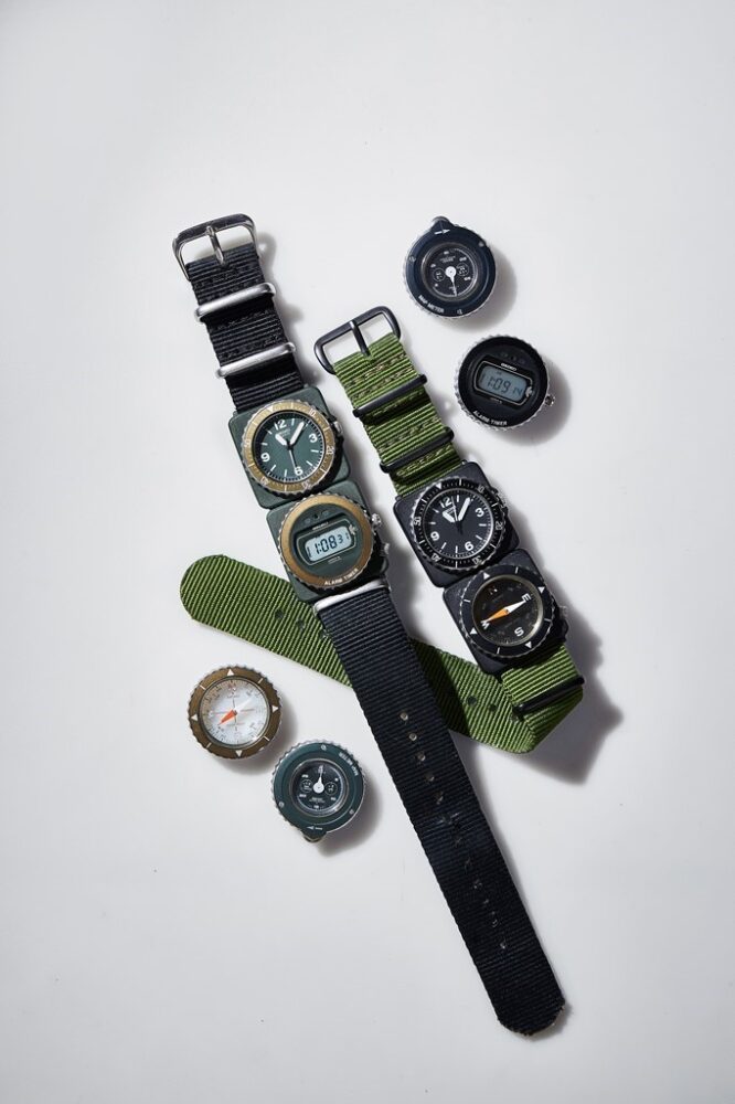 1982年から数年間のみ日米で発売されていたセイコーの初代フィールドマスター。NATOストラップの幅とさほど変わらない小振りなケースが上下に連結された、コンボ構造を特徴とするアイテムだ。しかも下部に関してはデタッチャブル仕様となり、デジタル、コンパス、マップメーターをそれぞれ装着できる。
