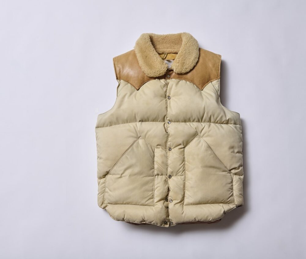 ロッキーマウンテンフェザーベッドを復活させたのが2005年。それよりもさらに遡り、約40年前に購入したクリスティベストは、襟に付けられたムートン、ダウンの封入量ともにコンディション良好に保たれた思い入れのある1着。