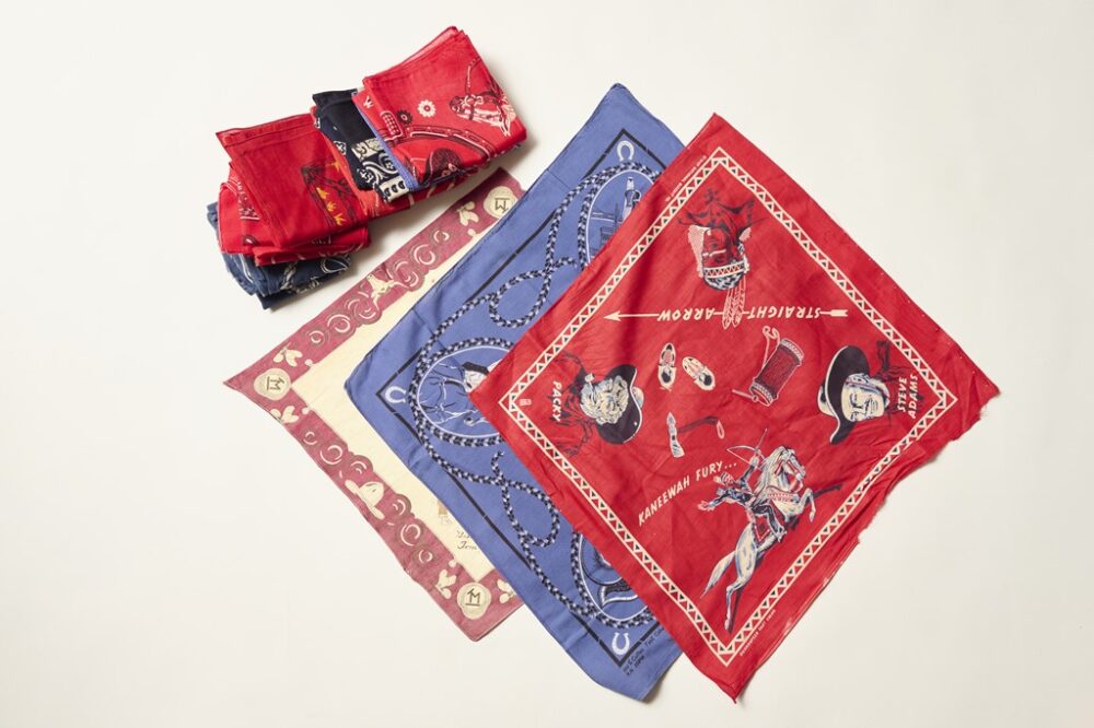 ほとんどがデッドストックで集められたウエスタンもののヴィンテージバンダナ。ウエスタンモチーフ以外でも大量にコレクションしている。