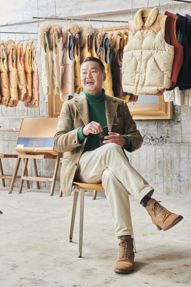 「ロッキーマウンテンフェザーベッドを初めて手にしたのは40年ほど前。当時、グローブ率いるピエール・フルニエ氏が手掛けた世界観にやられましたね。ウエスタンというより、アメリカ中西部の服かな。RMFCはもちろんオルテガのベストもそう。いま見ても新鮮で、決してコスプレではなく、モダンなファッションとして取り入れ、表現していたことが衝撃でした。