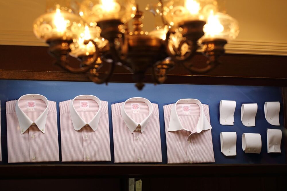 このあまりに長い歴史を経ても「物作りの精神は変わらない」と、六代目店主の石川さんは力を込める。好みや用途を細やかにヒヤリングし、正確に採寸する。生地も部材も豊富に揃え、裁断や縫製を担う職人とも密に連携する。あらゆる要望に応える土壌を完璧に整えているのだ。最古の店で仕立てるシャツには歴史に裏打ちされた格も宿る。