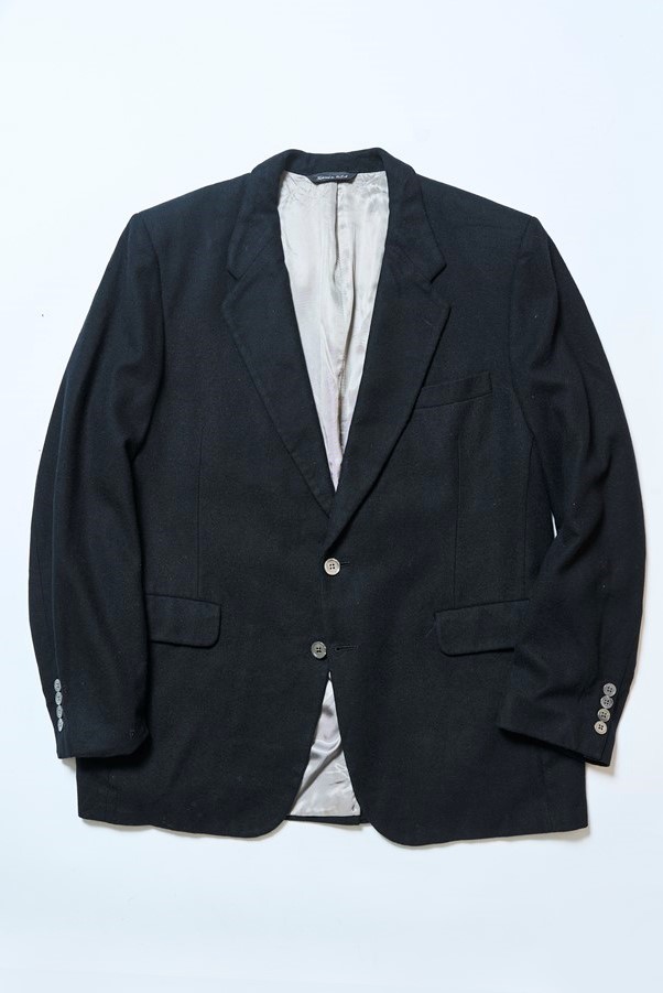 ニーマンマーカスのネームがつけられたアメリカ製のカシミアテーラードジャケットは1980年代頃のもの。