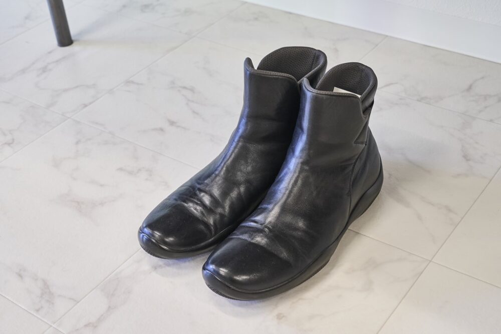 スタイリッシュかつスポーティな見た目のブーツはプラダスポーツのもの。