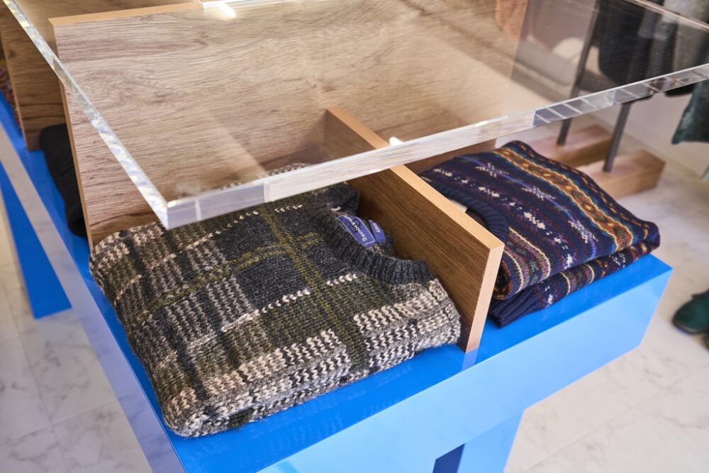 オーナーである大石さん自身、オールドならではの柄物ニットが好みで、日々のコーディネイトはもちろん、商品としてセレクトされるオールドミッソーニのニットをはじめとする柄物ウエアは、デサンブルを象徴するアイテムとなっている。