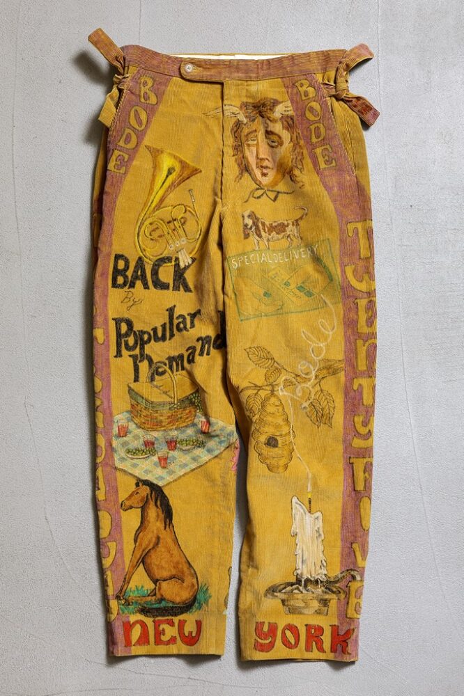 5~6年前にボーディというハンドペイントや刺繍のカスタムを得意とするブランドに出会ったことで、カスタム古着熱がさらに高まったのですが、そのきっかけがうちの愛犬をパンツにペイントしてもらったことでした。やはり動物モチーフはいいです」