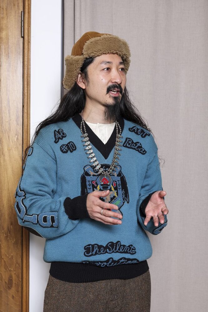 「達正さん(デニムブランド、ウェストオーバーオールズのデザイナー、大貫達正氏)にいただいたものです。よく呑みに行くのですが、その都度お願いしてたら譲ってくれました(笑)。サイズ感も刺繍のテイストもドンピシャです」