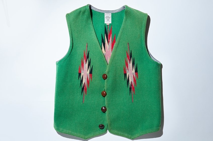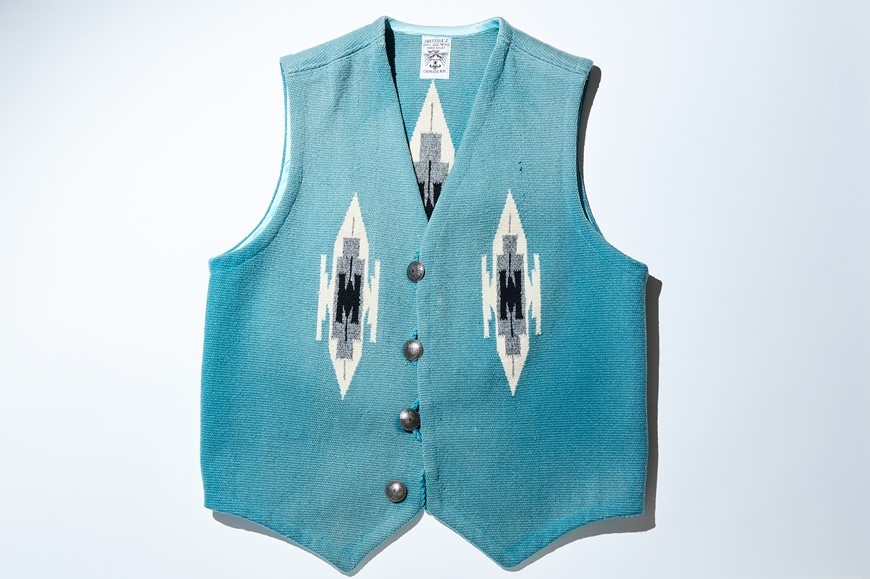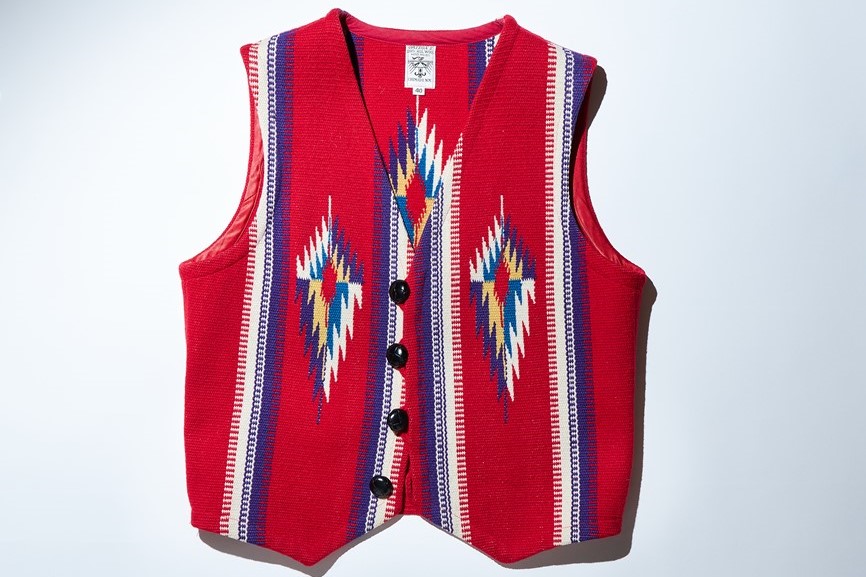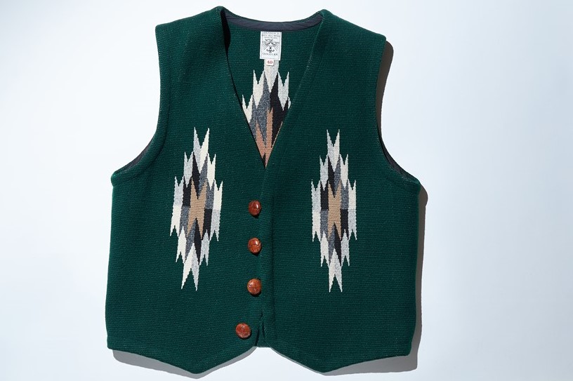 「中村さんはエミスフェールのオープンのためにピエールとアメリカ南西部のニューメキシコへ買い付けに行きました。そこで出会った現地の民芸品であるチマヨブランケットに目を付けて、この生地をベストにできないかと提案したそうです。チマヨベスト自体は40年代頃から存在していたのですが、もっと牧歌的なものだったのでファッションとしても楽しめるような型や柄でオーダーしたんでしょうね。もちろん、それまで日本でチマヨベストを売っている店なんて一軒もなかったのですごく珍しかったですし、ふたりのセンスはずば抜けていましたね」
