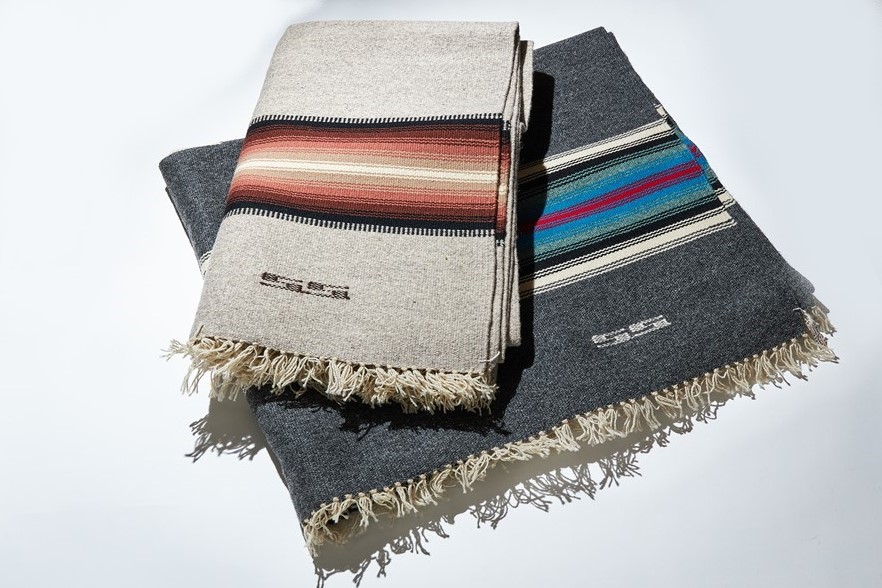 とくに卓越した技術を持ち、自らのイニシャル「SS」を入れることを許された数少ない織り手のひとり。目のしっかり詰まったブランケットは秀逸で小林さんも舌を巻く。各22万円