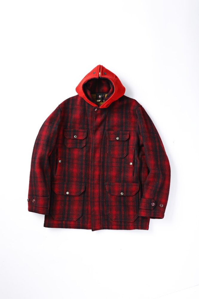 ウールマッキノージャケットでは外せないブランド。フードは視認性を高めるための赤でジッパーで開けるとチェック柄の襟に戻る。3万2780円(グレース TEL03-6416-3457)