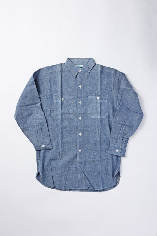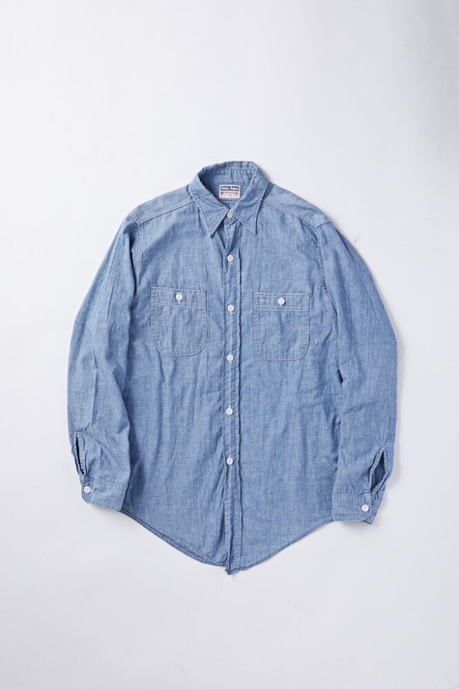 今回は、コットン地で爽やかなブルーがインナーにもアウターにも合うCHAMBRAY SHIRT(シャンブレーシャツ)をご紹介。定番モノだけにハラダさんのセレクトは参考になるはず。