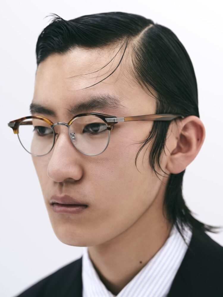 アメリカ的ともフランス的ともとれる他にはない絶妙なバランスのウェリントンタイプは1960年代にジャズミュージシャンが着用していたメガネからインスピレーションを受けている。ヴィンテージの意匠である置き蝶番が武骨なアクセントを加える。3万8500円
