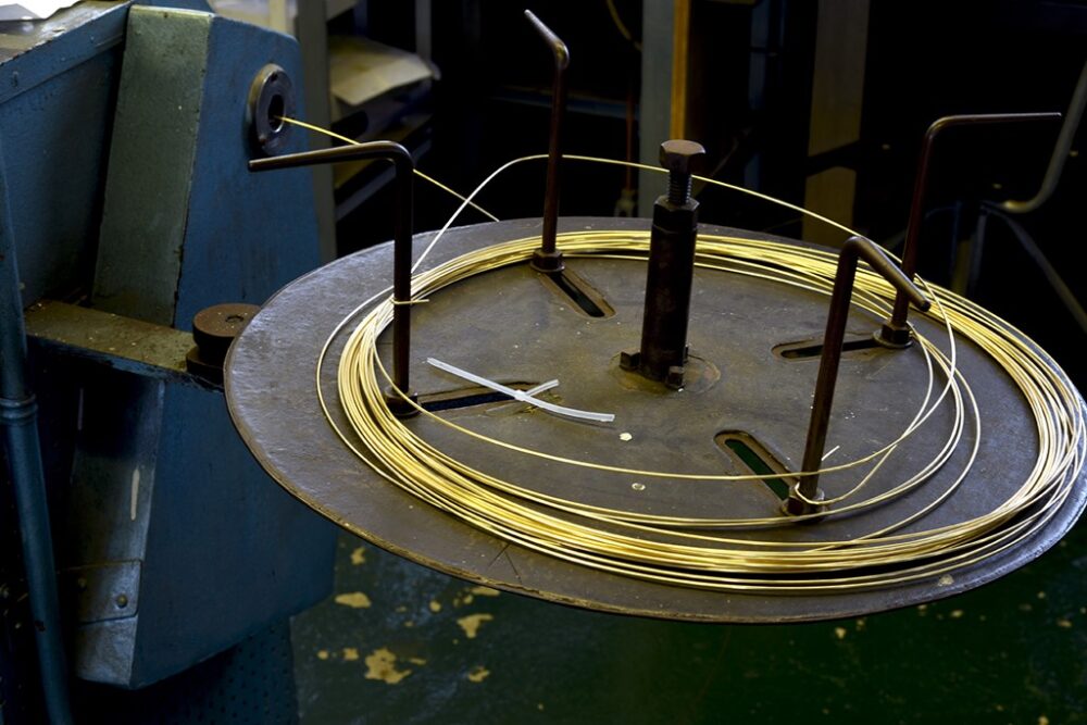 ヴィクトリア王朝時代の置き土産といえるロールドゴールド製法が、サヴィルロウを作る老舗工房アルガ ワークスの伝統的技法。金を圧着する金張に近いが厳密には少々異なる。