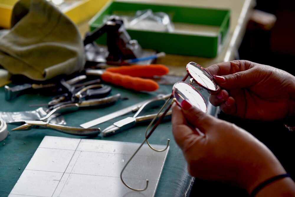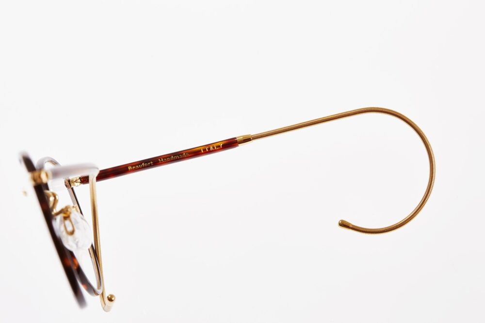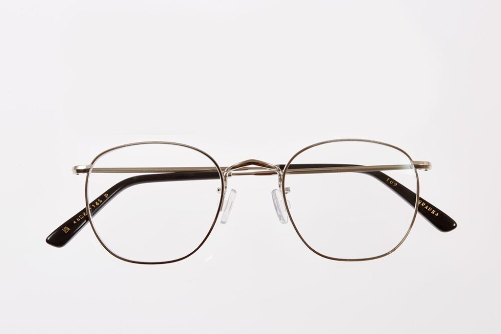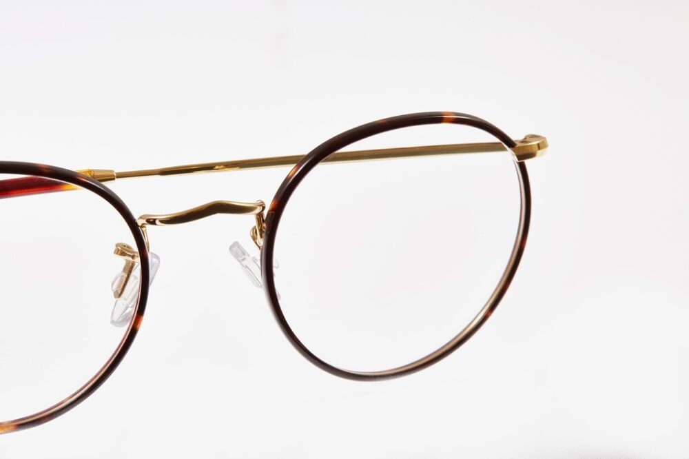 サヴィルロウの特徴のひとつである多彩なカスタムオーダーは健在。ゴールドかシルバー、フレームの色を決めたら形を選ぶ。往年の丸型「ラウンド」を筆頭に、ジョン レノンも愛用したことで知られるボストンフレーム「パント」。そしてウエリントンシェイプである「クアドラ」の3種からだ。