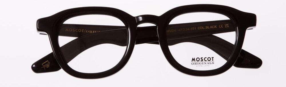 5代目ザック・モスコットがデザインしたモデルを踏襲。テンプルの盛り上がった2ドットの鋲も特徴的。「イタリアンアセテートを使用し、肉厚ながらシャープなレンズによりすっきりとした見た目です」。3万6300円