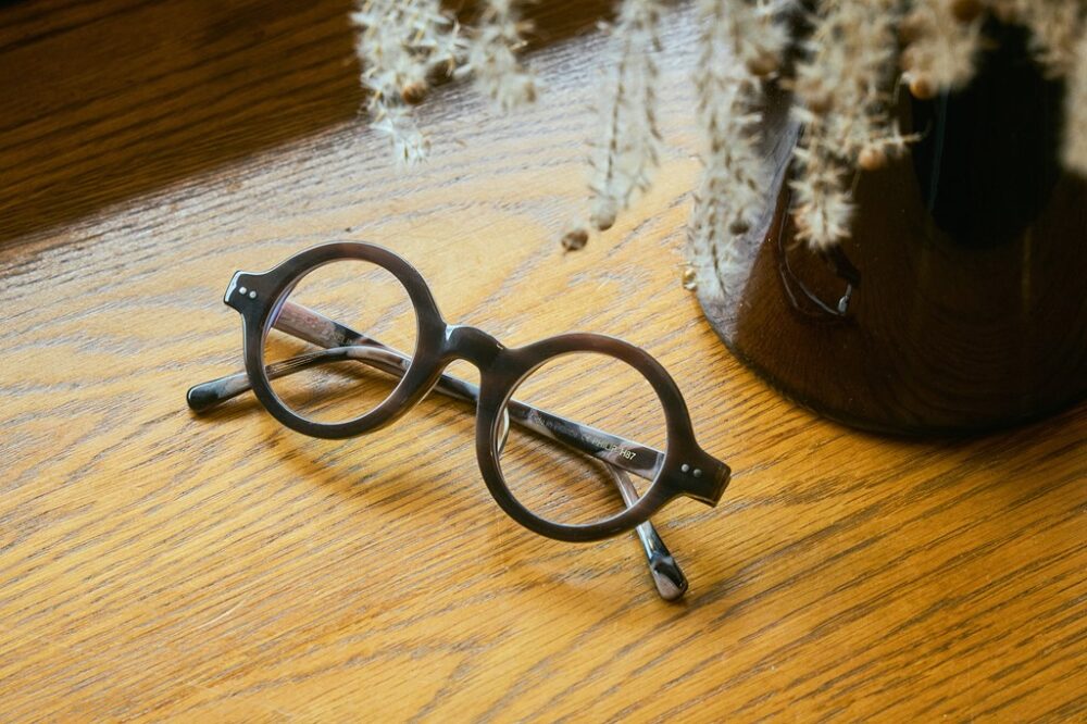 ユーロヴィンテージを思わせる丸型も、柔らかな色味ゆえ自然と距離が縮まる。 テンプル裏に忍ばせたマーブル調のデザインもさすがの出来栄え。「アランミクリがクラシックなモノを作っていた頃の一本を思い出させます」。4万2900円