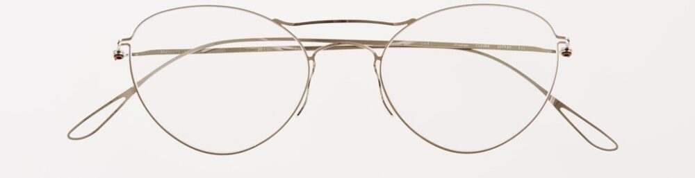 同社の個性を感じさせるウルトラライトシリーズで、釣り上がったレンズシェイプが個性的。「特徴ともいえるシートメタルをワイヤー状に加工する手技は、デザイン性と掛け心地の両立を叶えています」。6万7980円
