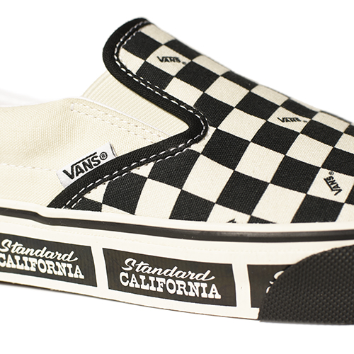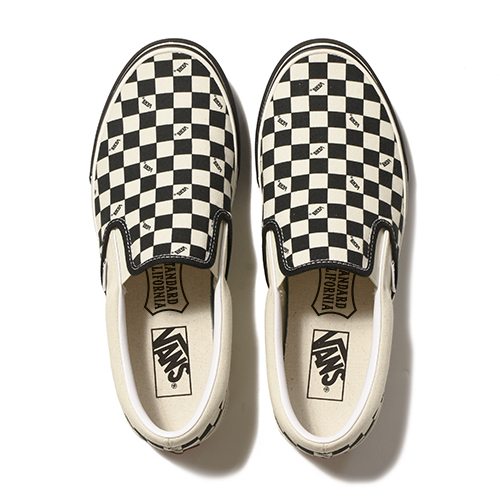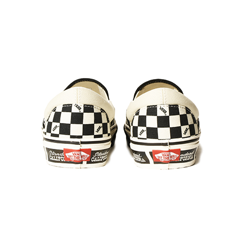 これまでも何度も別注アイテムを発表してきたが、今回は節目の年ということで阿久戸氏が最も好んで履いているSLIPONを白黒のチェッカーフラッグ柄で落とし込んだ。MADE IN USA時代に近いフォルムも再現されているのもポイントだ。