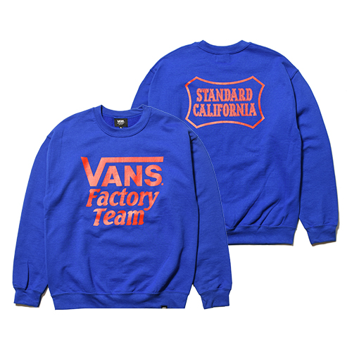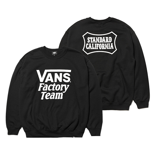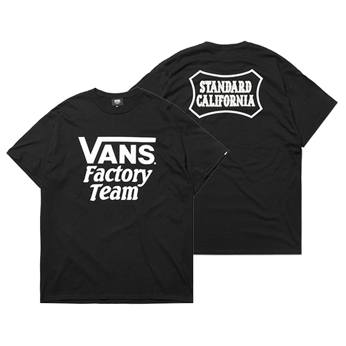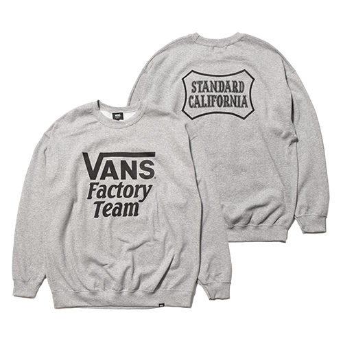 また同じく別注をかけたTシャツ、スウェットはの阿久戸氏自身のVANSコレクションの中で一番気に入っている「FACTORY TEAM」のロゴをフロントに配置。バッグにはSTANDARD CALIFORNIAのSHIELD LOGOが配されている。