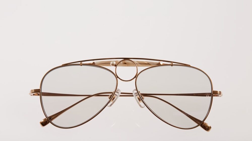 柔らかなパントシェイプから伸びる右テンプルに万年筆モチーフのディテールを配している。『老人と海』の作者ヘミングウェイを着想源にして、執筆する姿や彼の雰囲気そのものをアイウエアに焼き付けた。6万2700円