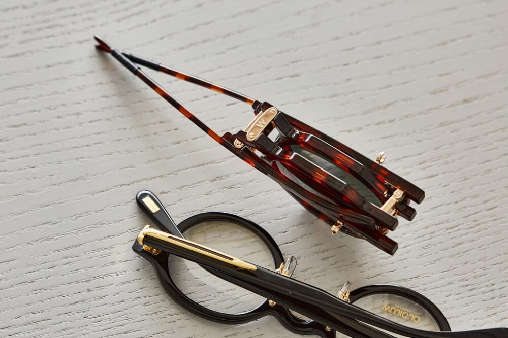 サングラスを折り畳んだ姿が老人サンチャゴが乗り込むボートのメタファーになっていたり、メガネをジャケットの胸ポケに挿しておくと万年筆のように見える仕掛けだったり….。物語を込めているのだ。