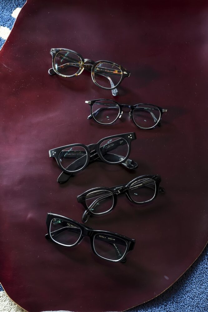 近年は2年おきにメガネを新調しているそうで、セカンドでもおなじみのジュリアスタートオプティカルの名作[FDR]は2018年に購入したという。「3点リベットが両側にせり出した意匠がカッコいいですね」