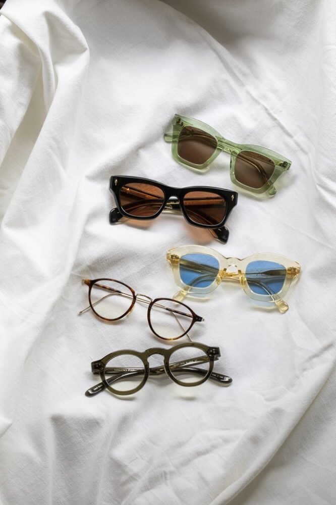 「タレ目の反動か、サングラスは少しツリ目な太めセルのフォックスをつけることが多いです、その反面メガネは華奢でナローな雰囲気なものをさせてもろてます。展示会は同行したらあきません。見たら自分が欲しなるし」
