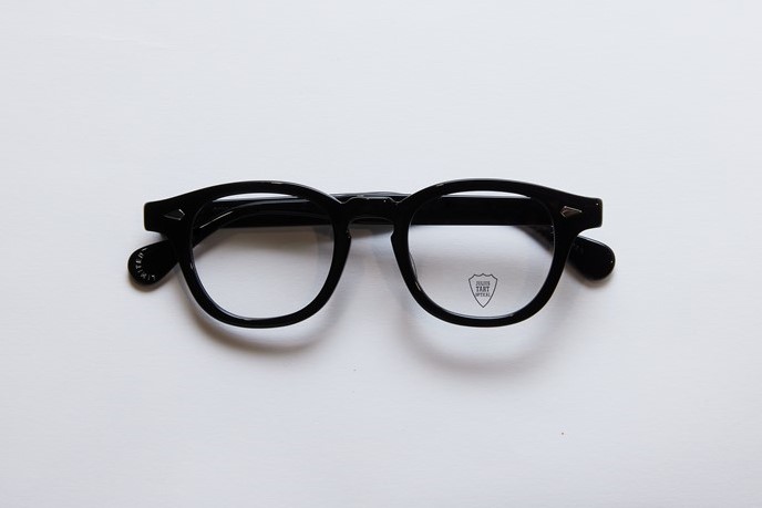 通常より0.5ミリ薄い5ミリ厚で仕上げた0カーブのフロント等のディテールを忠実に再現した、デコラ・G.B.ガファス別注モデル。テンプルエンドには特別仕様の刻印も。4万6200円