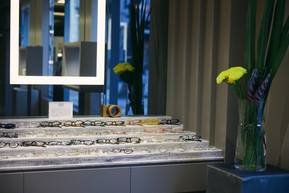 ソファーやカウンターに腰をかけながらゆっくりと接客を受け、心ゆくまでアイウエア選びの時間を満喫することが可能だ。