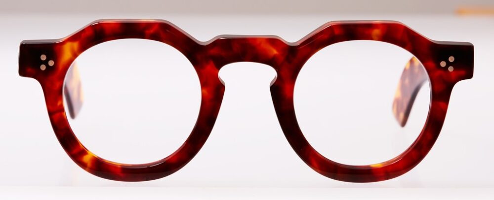 実はこの形は、フランスのメガネ産地であるジュラ地方で、20年代頃から製造されている。20年代から工房をかまえるレスカ家や、40年代に始動したマックス ピティオンが、この伝統的なデザインを継承している。