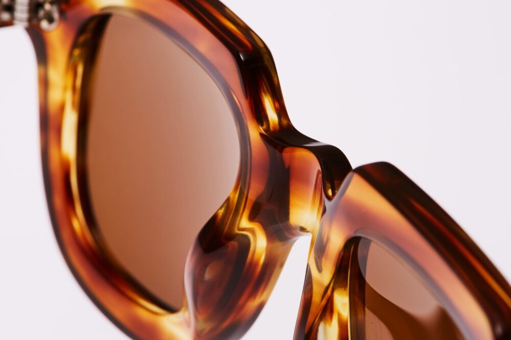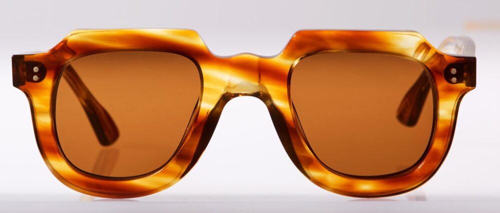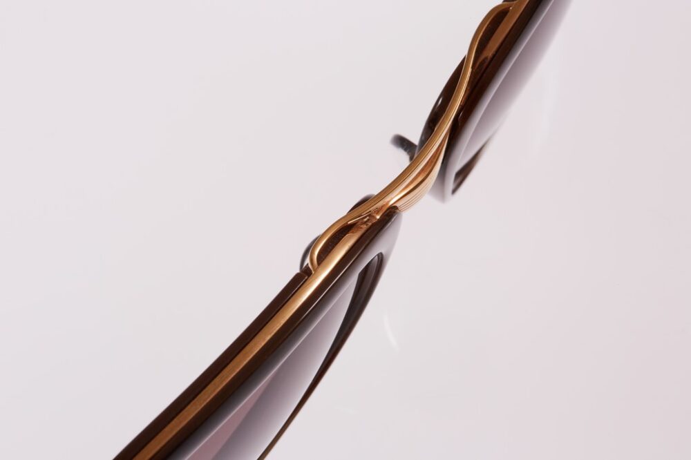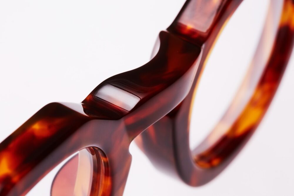 厚さ8mmのアセテートを削り出した重厚なフォルムは、伝統的なフレンチヴィンテージを踏襲したもの。しっとりとした光沢が美しく、カッティングも迫力がある。