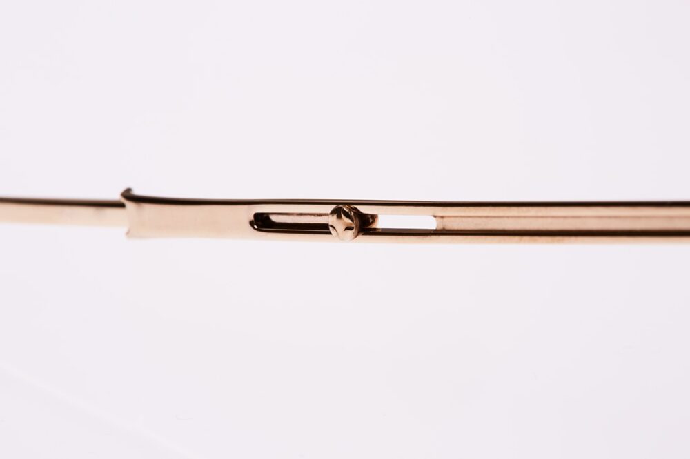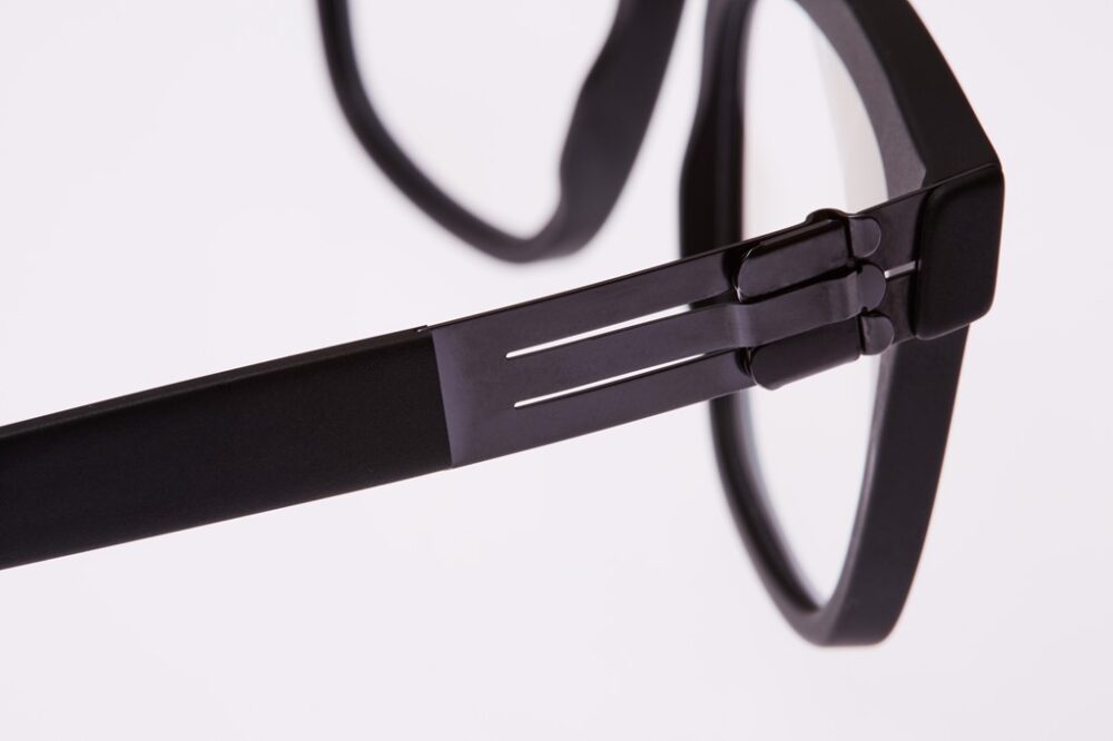 柔軟性があって軽量な厚さ 0.5 mmのステンレスシートをテンプルに採用。驚くほど軽くて柔らかな掛け心地に。ネジを使用しない独自ヒンジは壊れにくくて脱着可能。