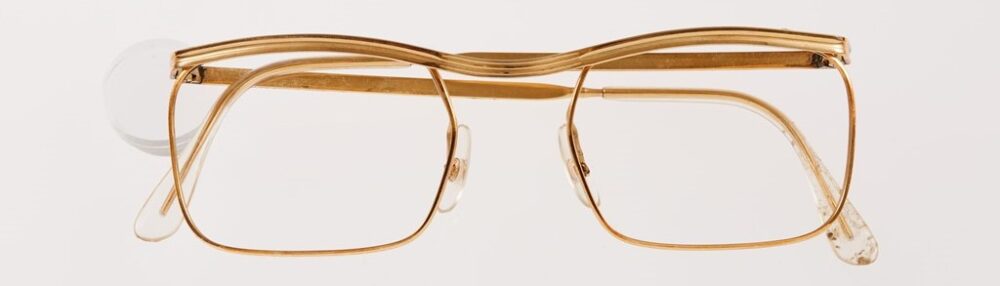 第一次世界大戦直後、片目を失った傷痍軍人が使用していた反転メガネを、ルノアが再構築。2本あるブリッジの内側にあるブリッジを動かして合わせる。