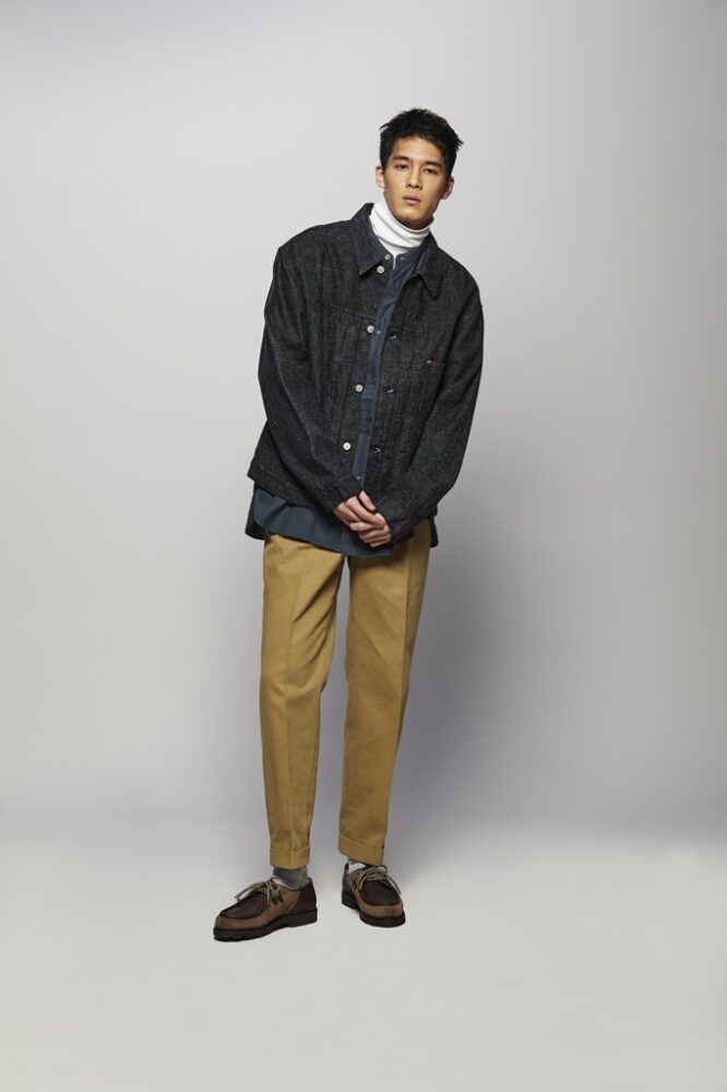 サード型をベースにポケットのVの角度や袖丈、着丈等を現代的に着こなせるよう、ミリ単位で調整。あえて捻れ防止や毛焼き加工を省いた生地を用いて、味のあるエイジングを追求。2万6400円(ダブルエックスデベロップメントTEL058-253-2630)