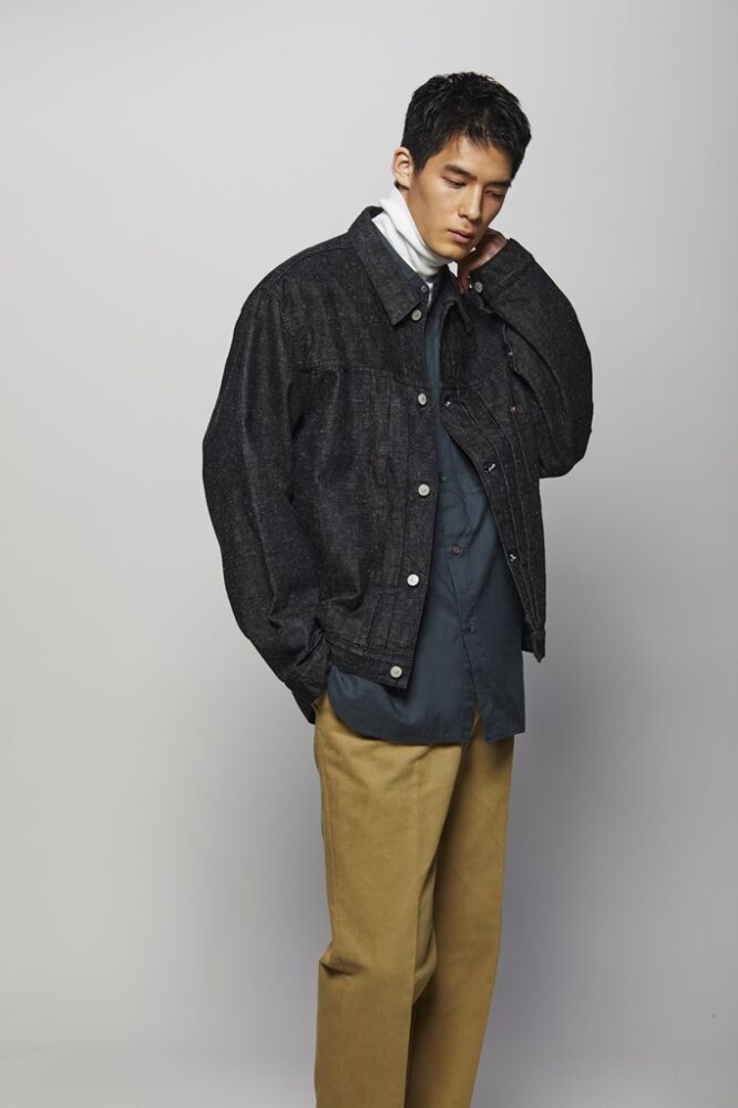 2種類のムラ糸を使い、フルブラック染料による反応染色で染め上げた生地は、自然なアタリと優れた伸縮性を兼備。太すぎず細すぎない、長すぎず短すぎない、絶妙なバランスも追求。3万9600円(カイタックインターナショナルTEL03-5722-3684)