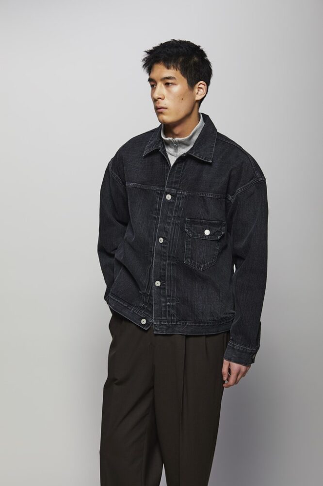 同ブランドの看板アイテムのブラックバージョン。旧式シャトル織機で織り上げたデニム地に、自社工場で加工を施し、ヴィンテージと見紛うリアルな経年変化を表現。適度に脱力感のあるシルエットも健在。3万5200円(ユナイト ナインTEL03-5464-9976)