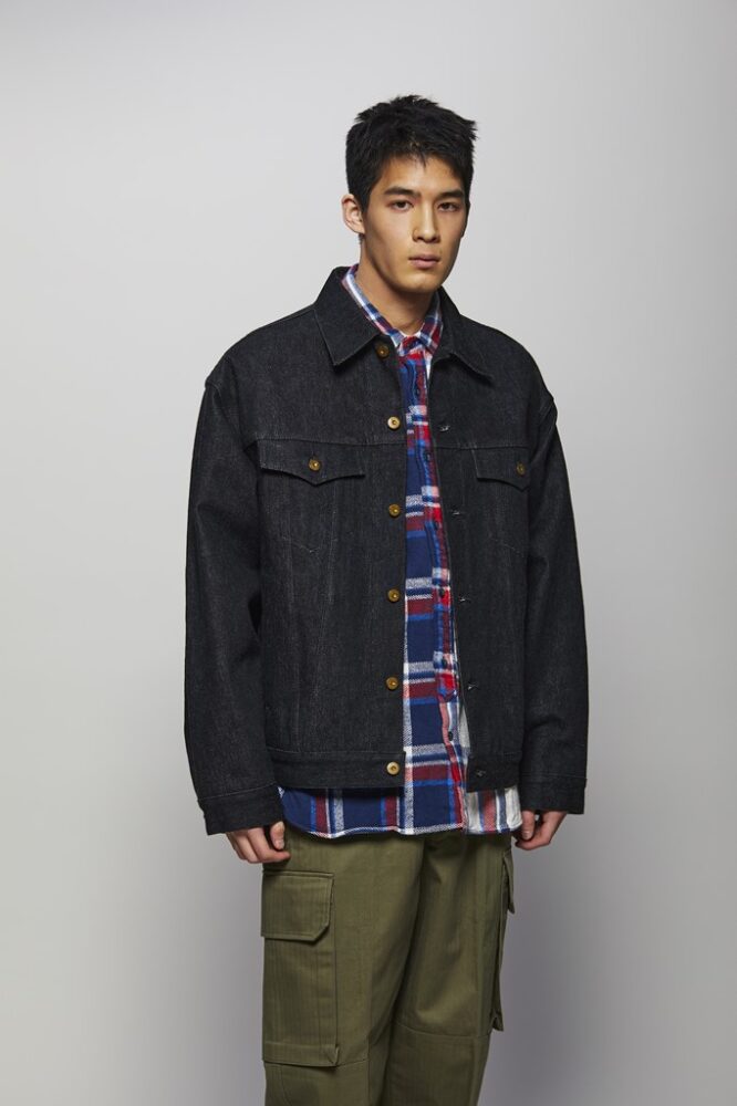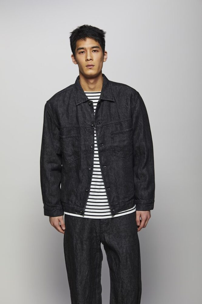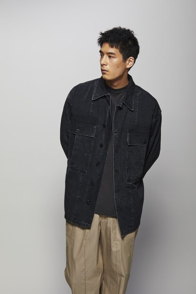米軍の名作ジャケット“M-43”をベースに、ブラックデニムを使ってウォッシュ加工を施すことで、過度なミリタリー風味をアク抜き。両胸のフラップポケットをはじめとする、通好みな意匠も光る。2万9700円(ベースデニムプロダクツTEL0798-74-8106)