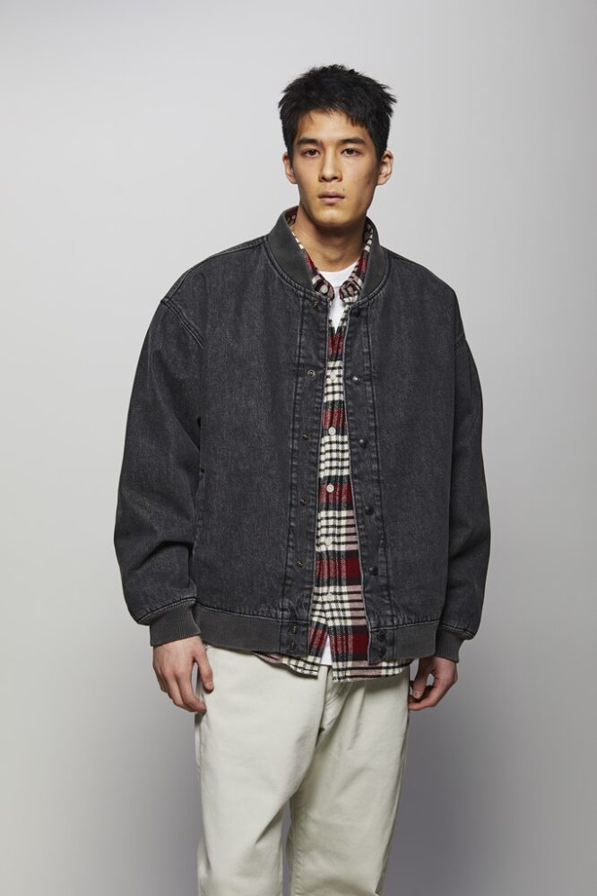 ヴィンテージテイストのバーシティジャケットをブラックデニムで仕立てた個性派。グレーがかったアタリや肩の落ち感など、細部まで目を配らせてクラシカルな雰囲気を演出している。2万2000円(リーバイ・ストラウス ジャパンTEL0120-099-501)