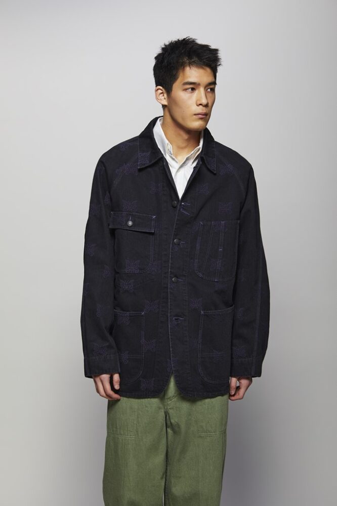 古式ゆかしいワークテイストのカバーオールを、パープルカラーのトリプルステッチを駆使してモダンに昇華。ブラックデニムをキャンバス代わりに、代名詞のバタフライ柄も生地自体に織り込んでいる。4万8400円(ネペンテスTEL03-3400-7227)