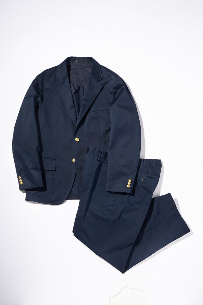 非常に打ち込みの強い綾織りのウエポン生地は洗いをかけることで粗野なシワやアタリが出る。まるで90年代のラルフのチノパンのような、“白っちゃけた”褪色をする。これなら紺ブレをもっとラフに楽しめる。もちろん同素材のパンツも買わせてもらった。ブレザー5万5000円、パンツ2万2000円(S&OコネクトTEL03-6447-5095)