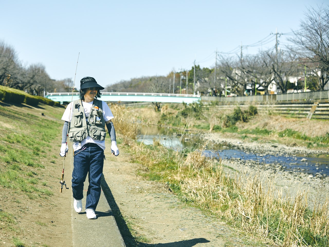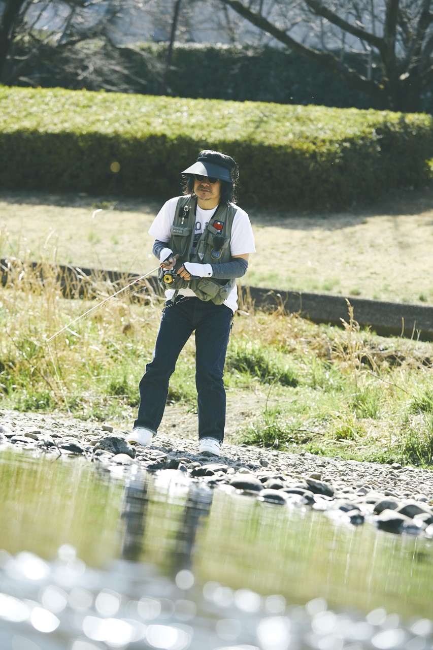 川のほとりで幼少期を過ごした、かせきさんにとって釣りは大切なライフワーク。春うららな陽気に誘われて「制作の息抜き」と言いながらアトリエを抜け出す。魚を探しながら歩き、ちょぼちょぼキャストする。決して釣れなくてもそんなことは大した問題じゃないのさ♪