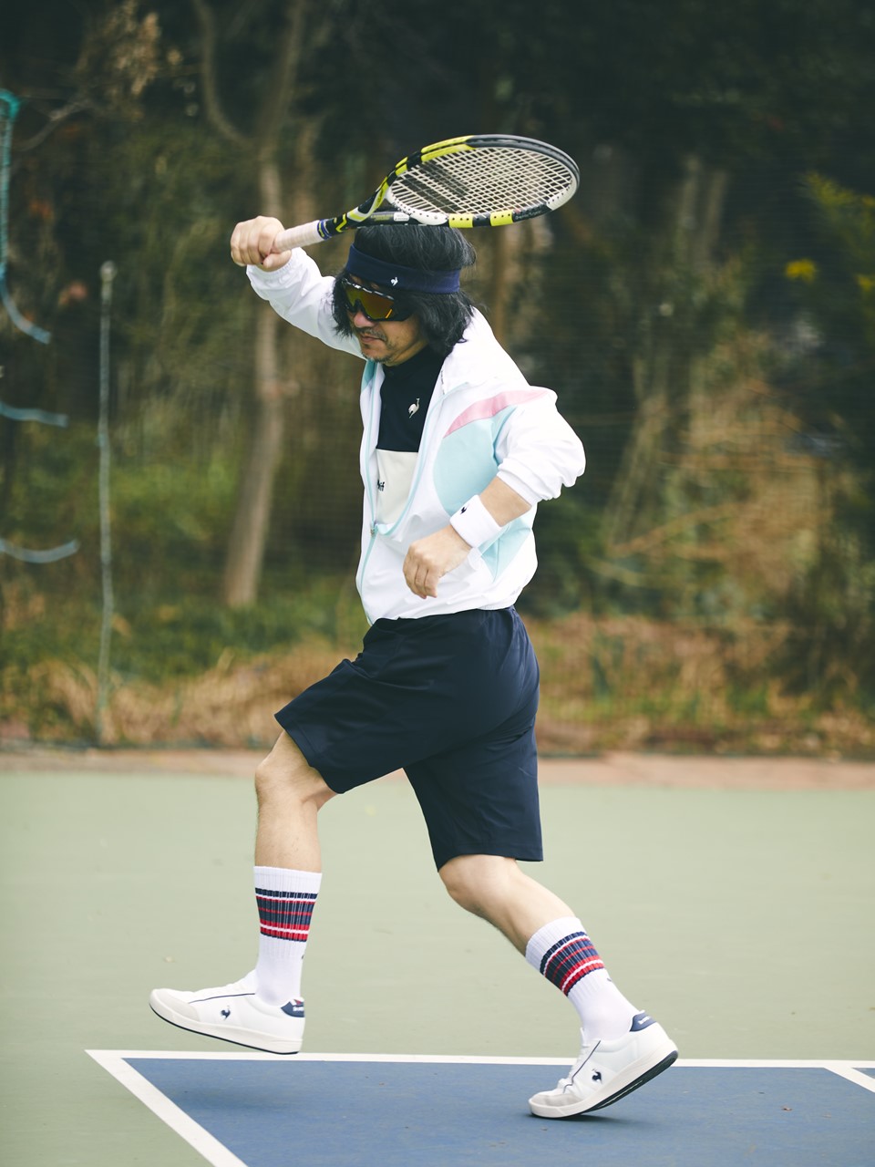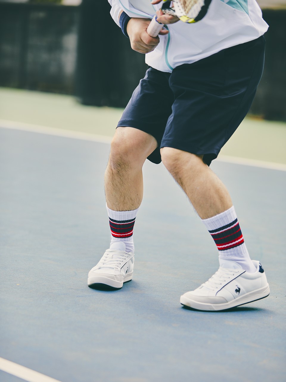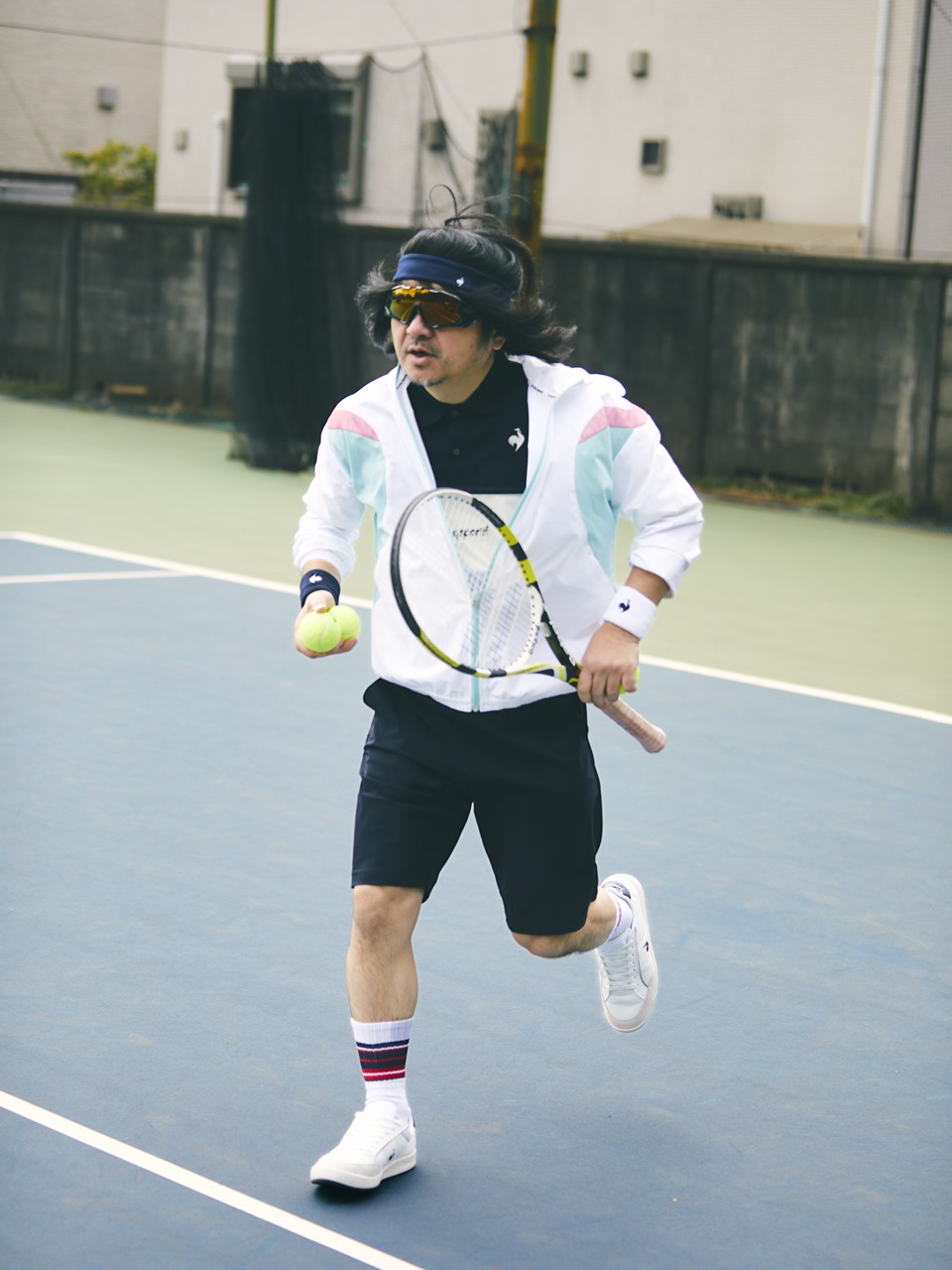 鮮やかなパステルカラーのジャンパーを主役に全身ルコックスポルティフのウエアでコートに登場。テニスは初心者ながらボールを俊敏に拾い集める姿はすでにプロ並み。ウエアの快適さに、どこかいつもよりアクティブなご様子だ。