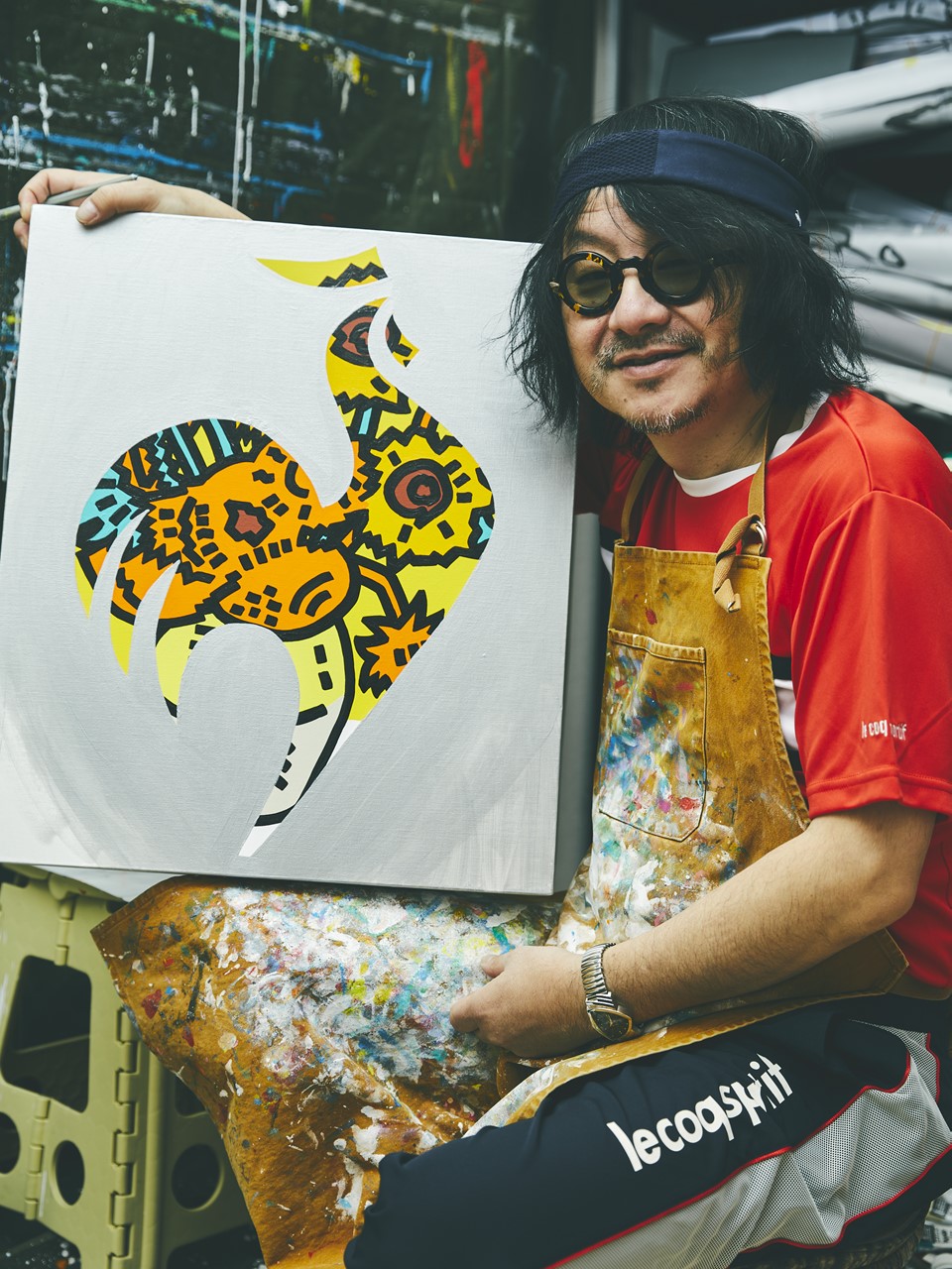 キャンバスに向かって黙々と描いていたのは、なんとルコックスポルティフのロゴを模ったかせきさんの代表作「ひまわり」。「最高に心地いい1日を過ごさせてもらったお礼に」と、かせきさんの優しさ溢れる粋な計らいに涙!