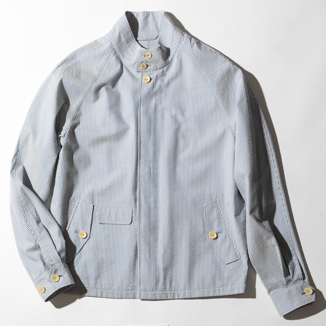 背のケープと袖が一体となったヨークスリーブを採用した軽快なブルゾン。イタリア人映画監督ミケランジェロ・アントニオーニが着用していた一着をソースに、国内開発の素材と綿密な縫製技術で仕上げた。19万3600円(コヒーレンス info@co-herence.jp)