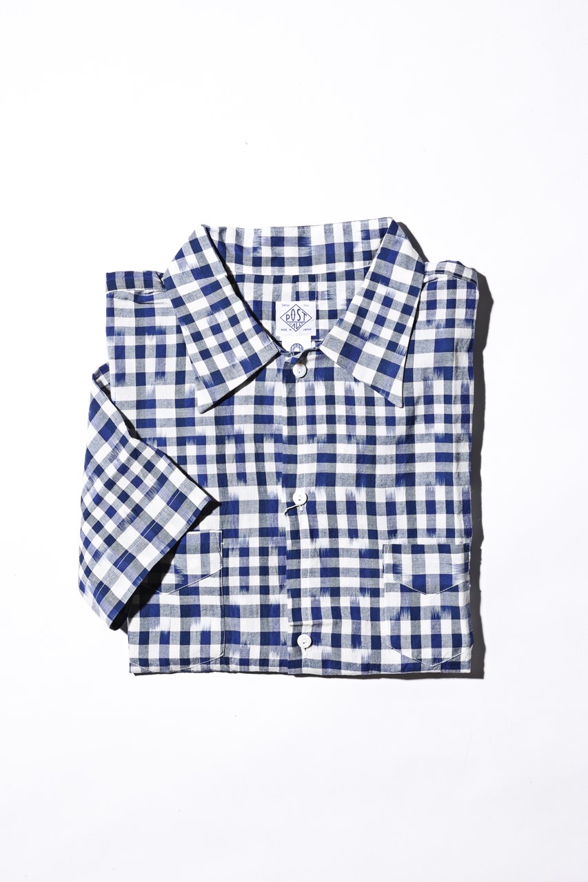 繊細なピッチの本縫いなど、ドレスのクオリティで再現。イカットチェック素材を使用した半袖。2万4200円