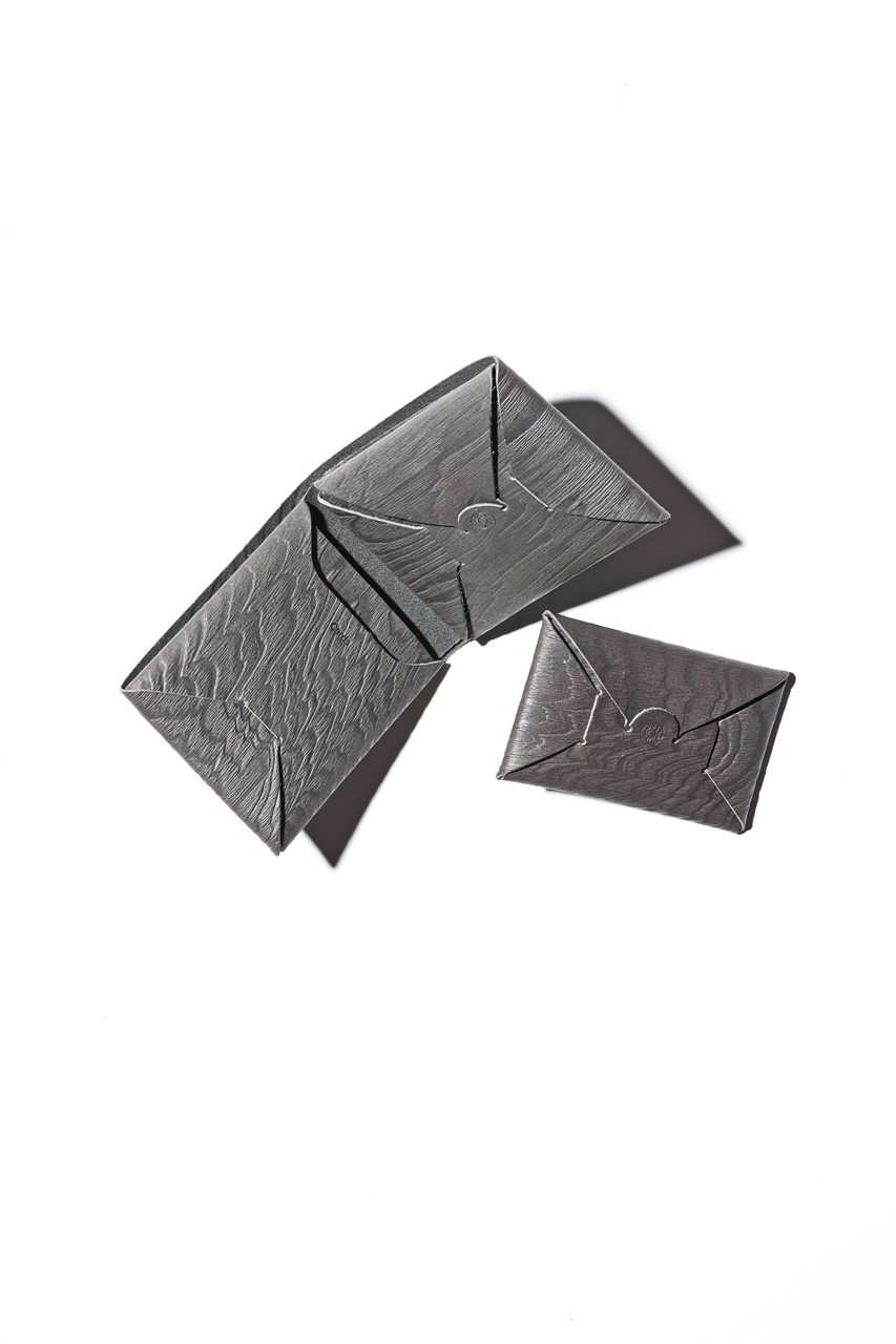 下町の実力派ブランドにカラー別注。木目のような型押しが特徴。大2万4200円、小1万1000円[今秋リリース予定]