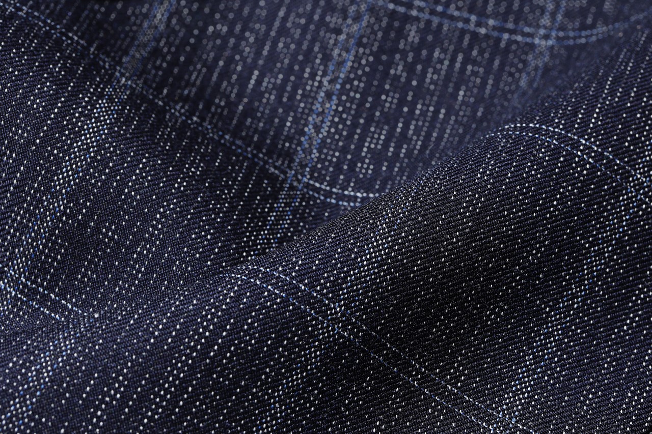 世界からも高い評価を受ける尾州のウール。尾崎さんは、昔ながらの力織機にてゆっくり生産される、深い味わいの生地に惚れ込んでいる。和服のカスリ柄にも似た和風チェックも特徴のひとつ。