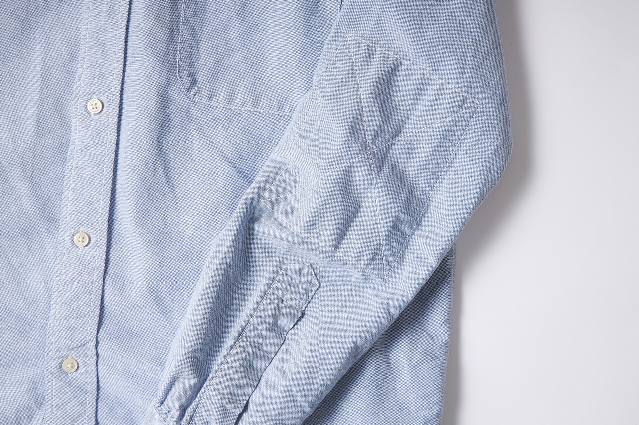 10年くらい前にブルーと白、チェックのボタンダウンを購入し着続けている。身幅が広く、着丈が短めというバランスが小暮さんの好み。「オーダーで仕立てたくらい、ジャストフィット」と絶賛する。他のシャツにはない、エルボーパッチ風の肘のデザインも好き。