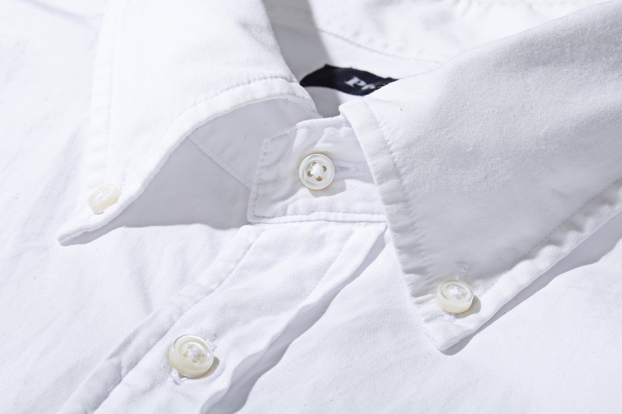 着心地を追求して辿り着いた80番手の糸を使用。「洗いざらしで着ても、違和感がない生地感で、シワの出方まで計算しました。個人的にはちょっと立体的になった襟のロールもこだわり。1番上のボタンを外しても綺麗に見えるシルエットを追求しました」